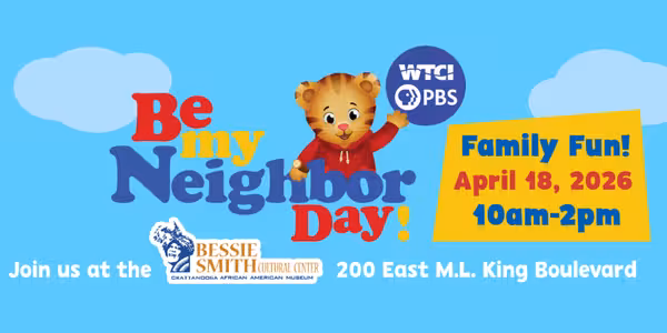 WTCI PBS is bringing their "Be My Neighbor Day" celebration to the Bessie Smith Cultural Center this year! This all-ages community event, inspired by Mr. Rogers, features character meet-and-greets with Daniel Tiger, Lyla, and Carl the Collector, along with music, discovery activities, and fun for the whole family.